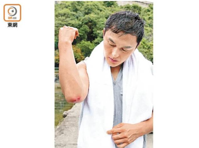 身穿T恤、短褲的他又熱又曬兼要餵蚊,在水中左撲右撲搜尋「遇險」的單立文,期間被尖石𠝹傷手㬹,導演即時暫停拍攝,工作人員提議他先處理傷勢,但他有感無大礙兼不想阻礙拍攝,直至拍畢才接受治療,相當專業。濕身後的他透出結實胸肌,身形明顯比之前Fit,他受訪時說:「之前太肥喇!42歲就有啲力不從心感覺,真係要瘦番啲,近期減咗十幾磅,希望再Fit啲。」